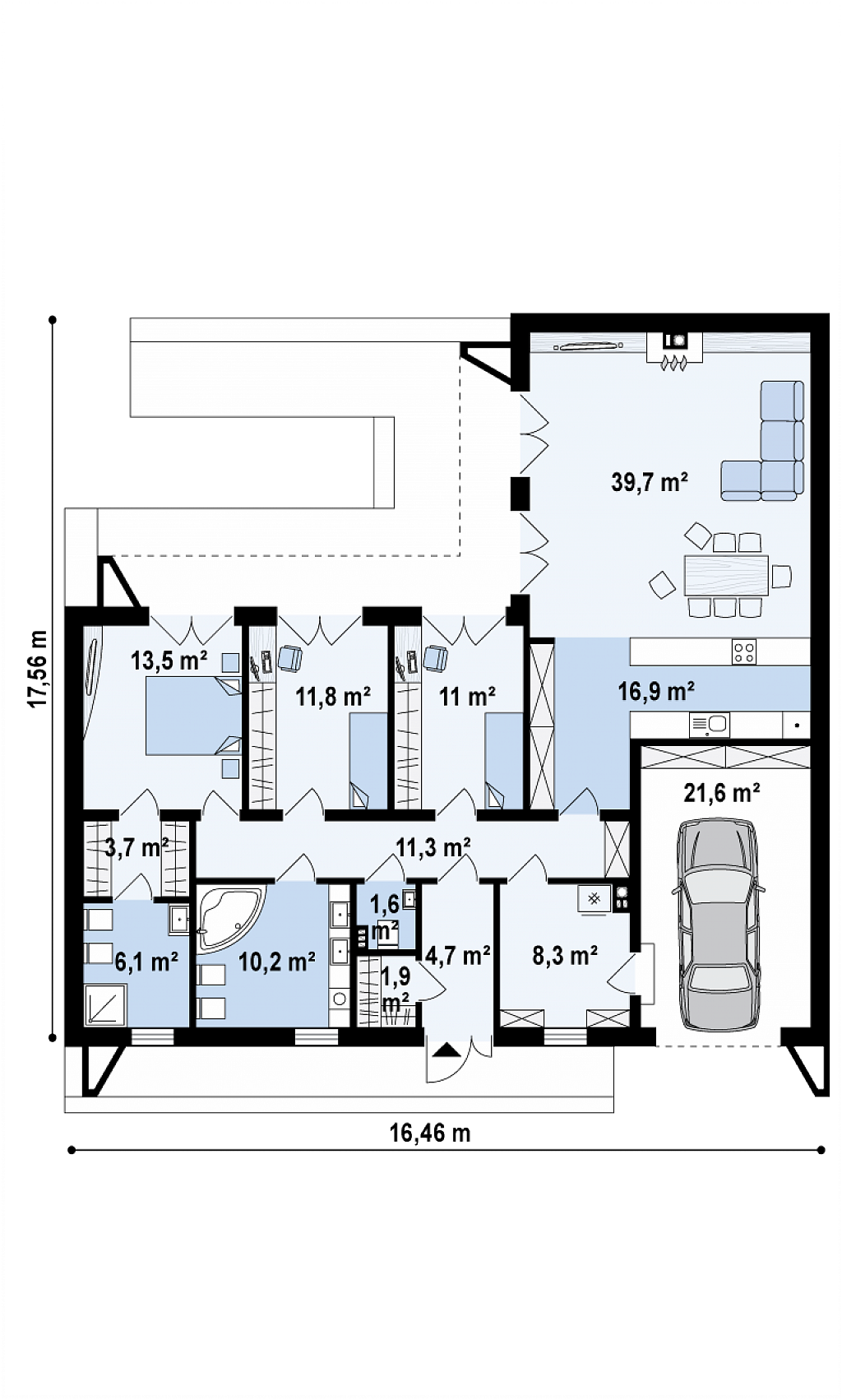 The Zx160 house plan is dedicated to people who like elegant, modern style.