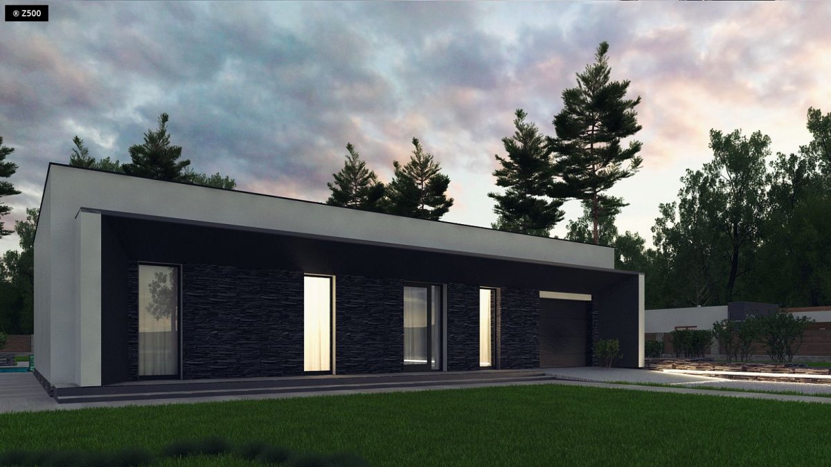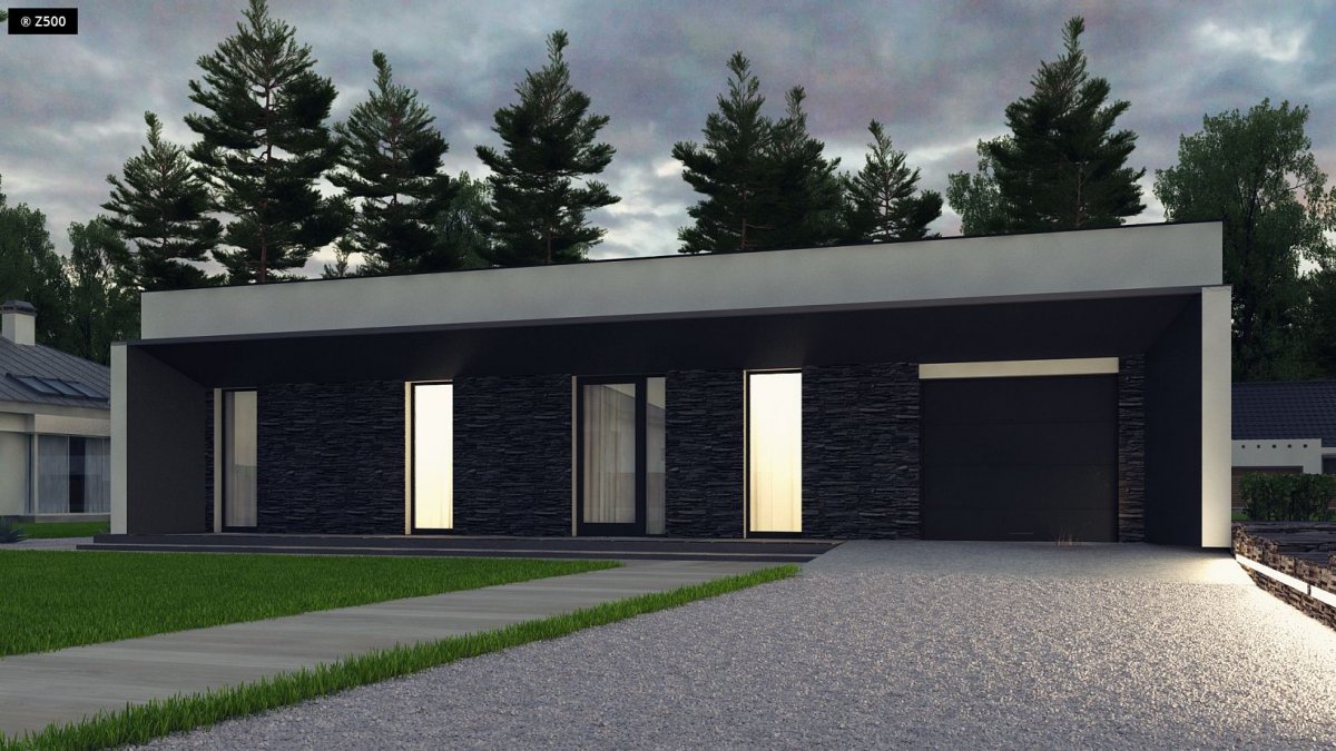 A modern, one-story house with a flat roof and a single garage. It meets the expectations of even the most demanding people.