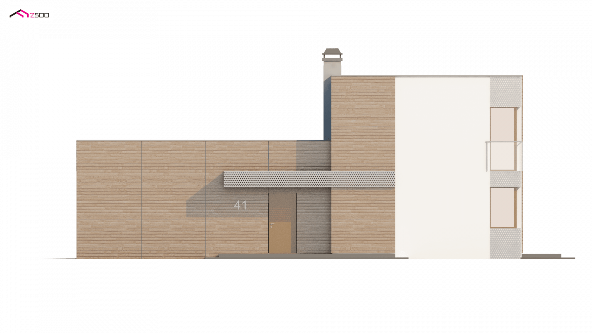 Zx41 is a proposal of a compact home for supporters of modern style. The combination of white and honey wood with elements of modern perforated sheet form a coherent whole with high aesthetics.