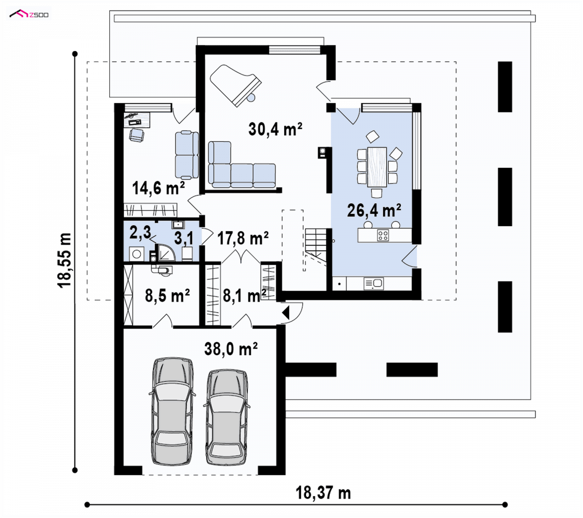 The Zx75 house plan is aimed at people who like elegant, modern style.