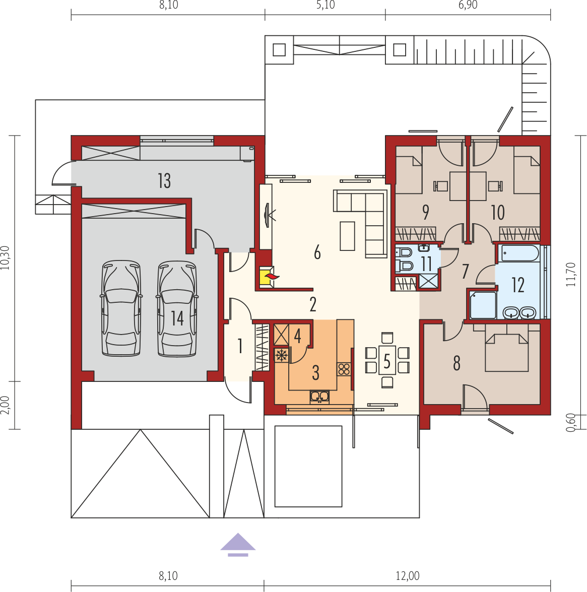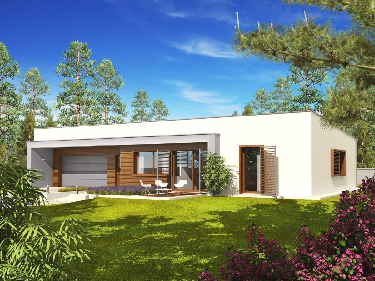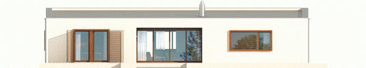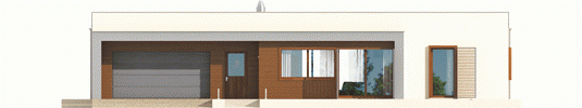 A one-story house, without a basement, with a double garage. Intended for a family of 3-4. The living area has a living room, comfortable dining room and kitchen with pantry. The night zone consists of three comfortable bedrooms with a bathroom and toilet. The technical part has a spacious utility room. EX 8 G2 (version C) soft is a house designed for lovers of modern design. The modernist body of the building dressed in raw white plaster creates an elegant composition that successfully blends in with any landscape. The advantage of the house is its sunny nature – large glazing invite natural light to the interior, which illuminates the space with its warm glow. Projects from the EX soft series are equipped with a standard set of installations: gravitational ventilation and a gas oven. There is a possibility of: – a basement