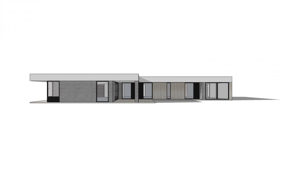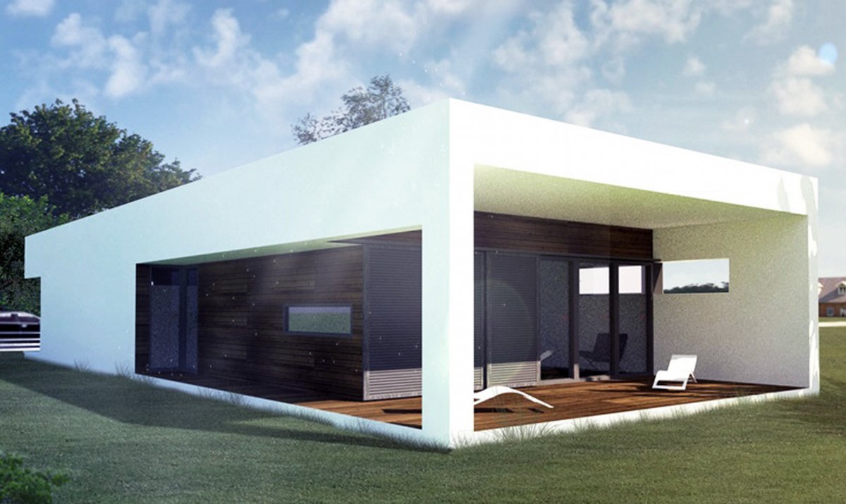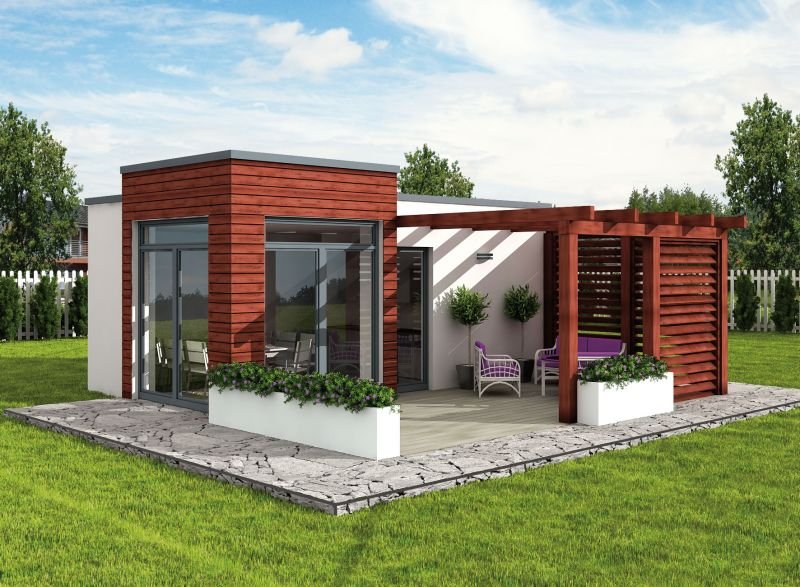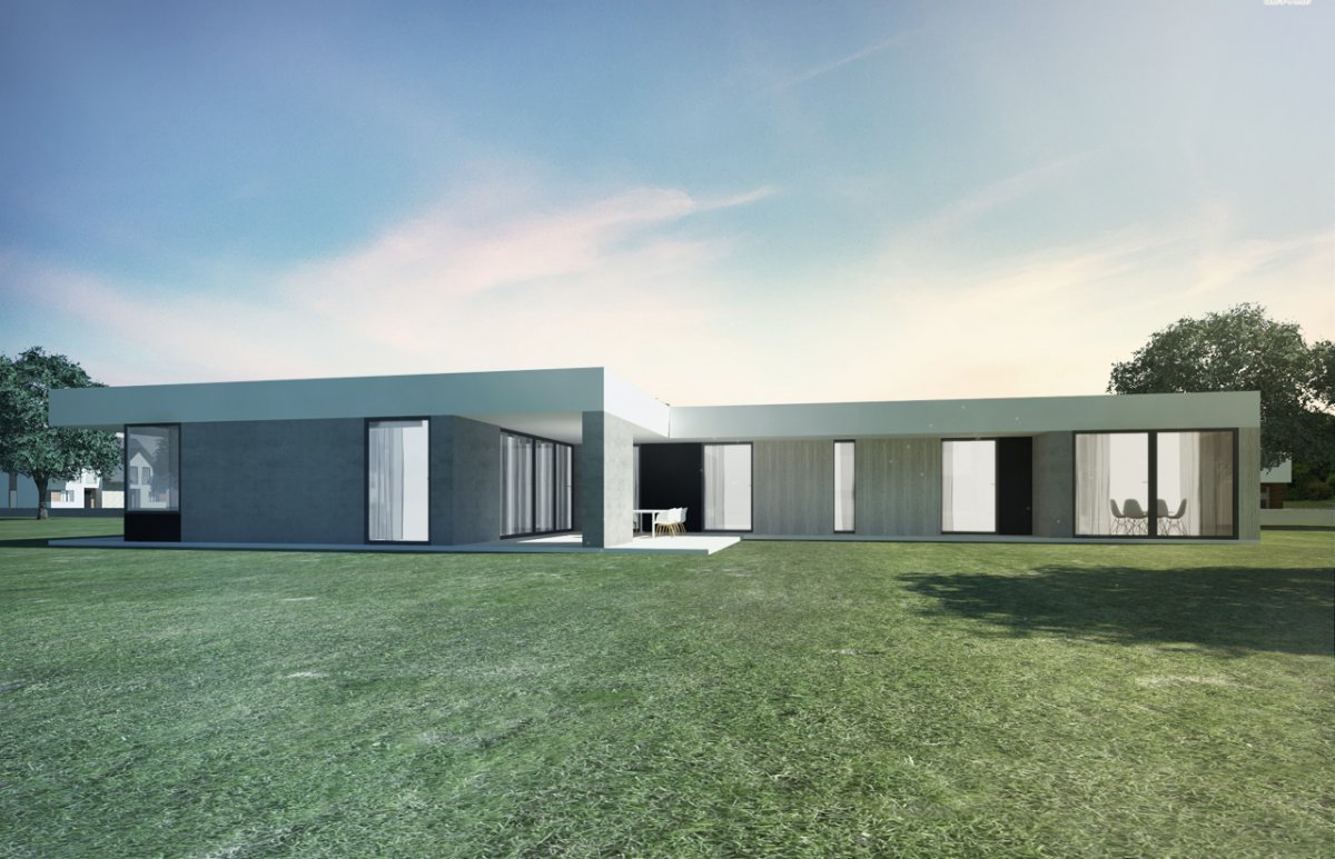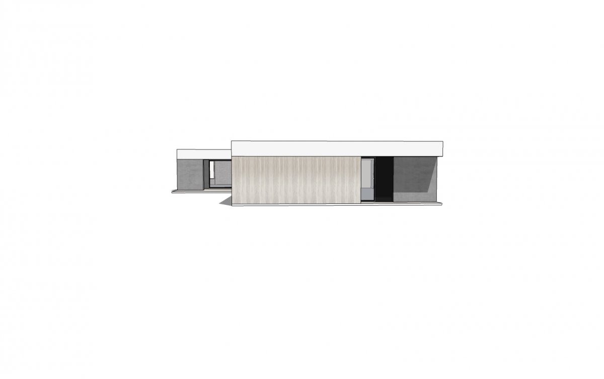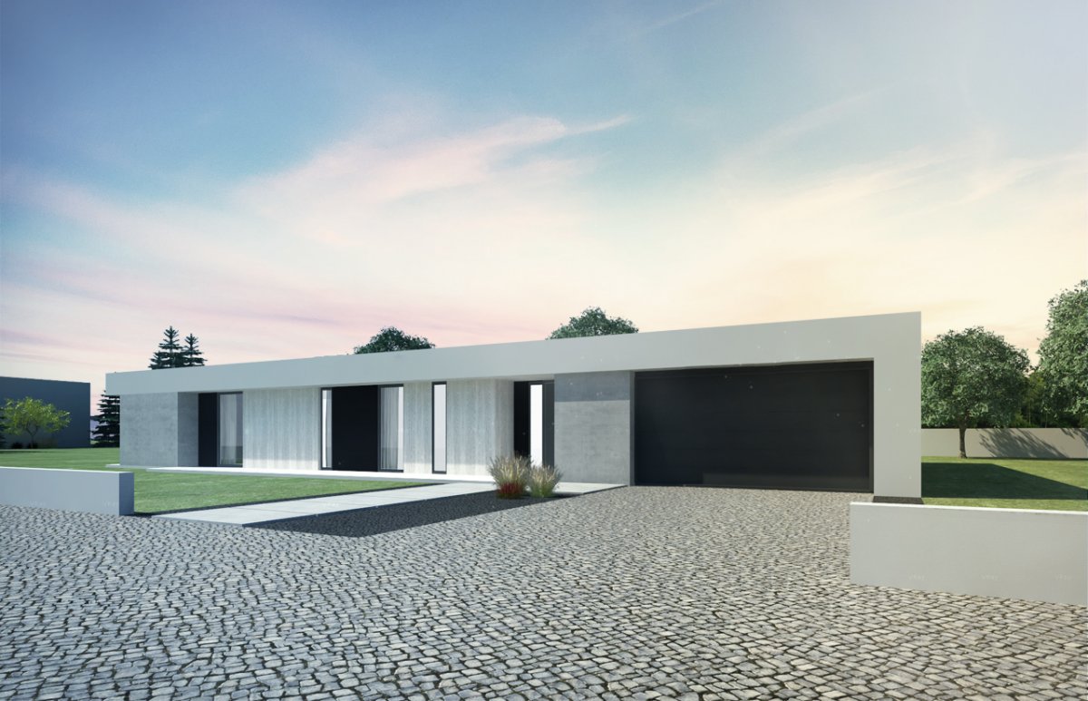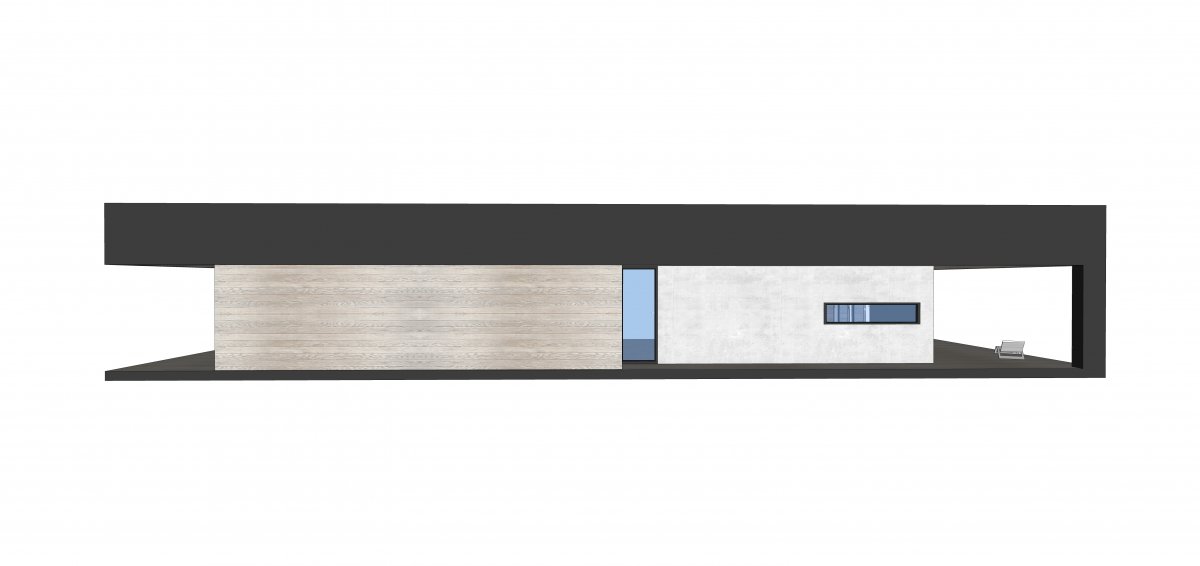 Zx35 is a modern one-story house with a flat roof. It owes its innovative character to a simple block, roof slopes hidden behind the attic and large glazing in the living room. White plastered facade and wooden cladding are a great complement to the modern style.