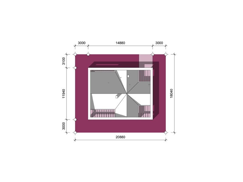 The main part of the house is a spacious, bright living room with a corner fireplace. Large glazing surfaces make the room bright and natural. Sliding glass doors lead to a spacious terrace. The dining room has been functionally integrated into the living room. The comfortable kitchen has a passage from the pantry to the hallway, which facilitates shopping bypassing the lavish living room.