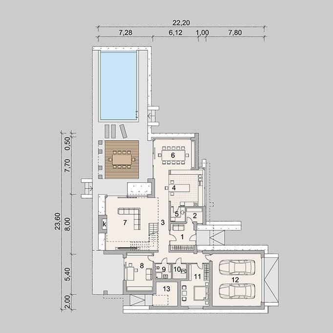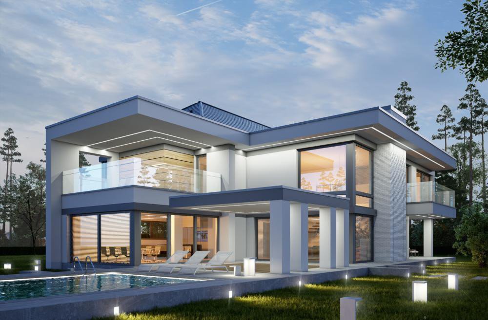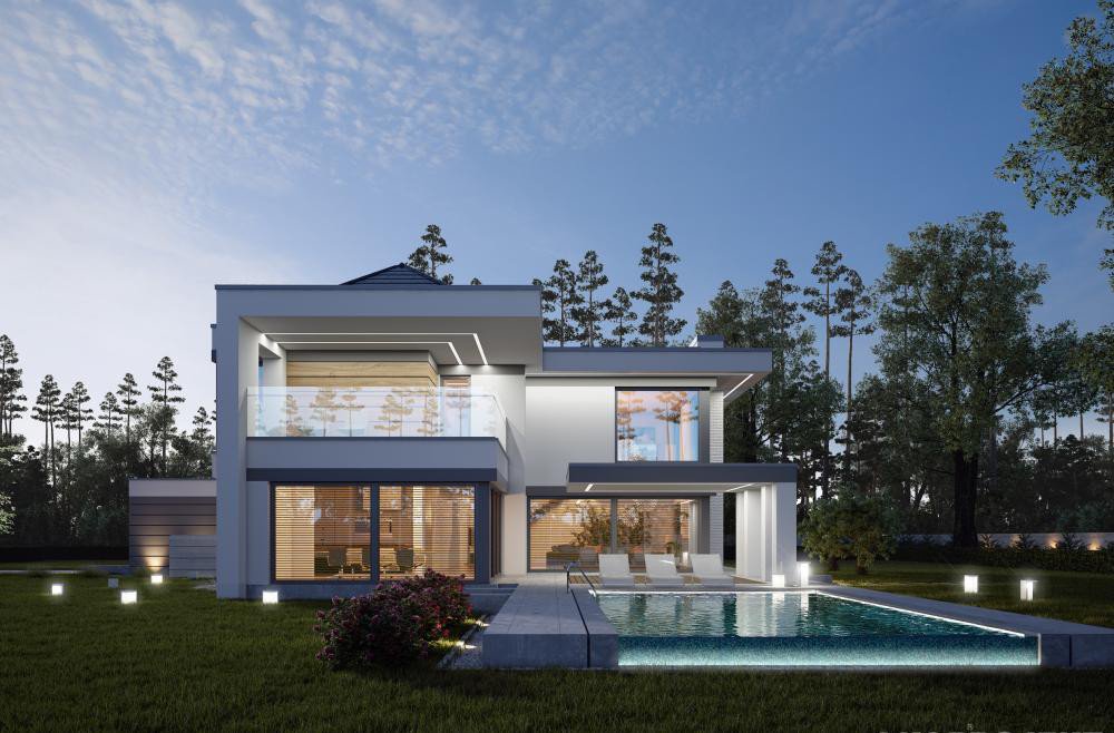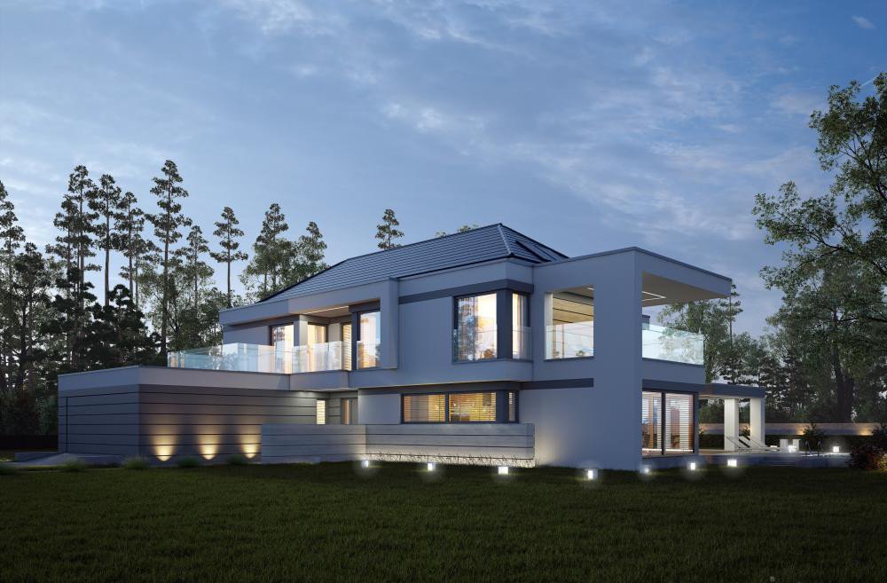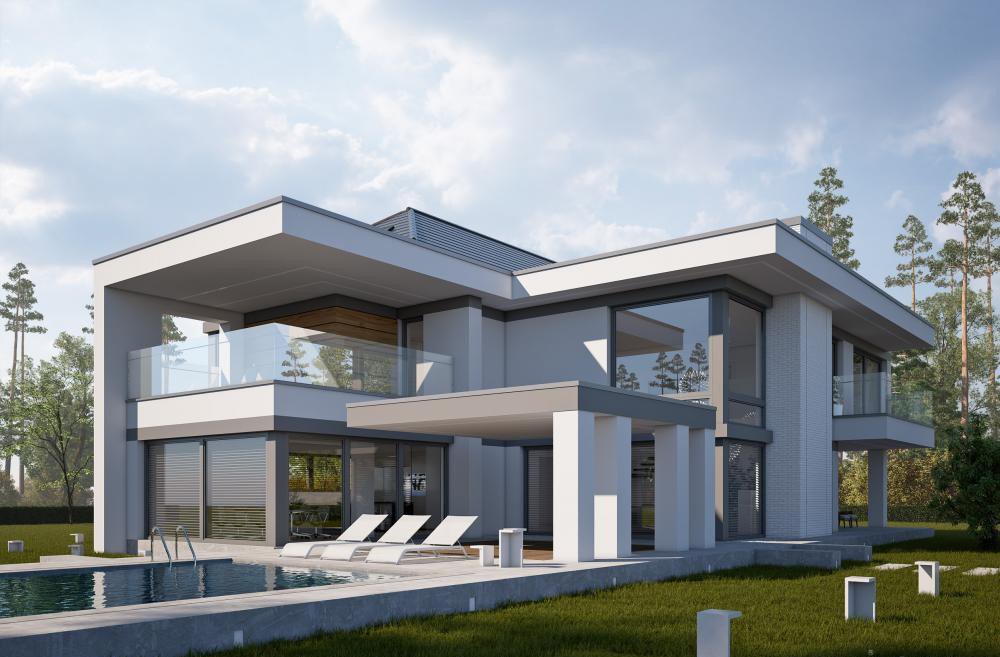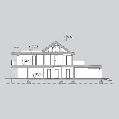 LK & 1258 is a large, modern house whose spectacular shape hides a very functional interior. It is a design of a modern residence with a double garage and an open mezzanine for the living room. It was planned in it 2 wardrobes, 4 bedrooms, 3 bathrooms and a kitchen, to which the pantry belongs. Without a doubt, the element that distinguishes this design is the unique glazing system that gives you the comfort of a sunny space.