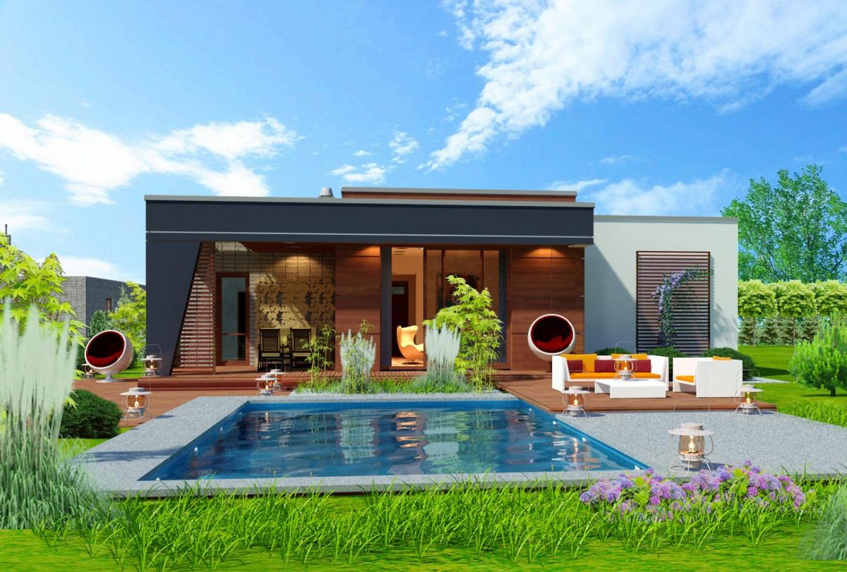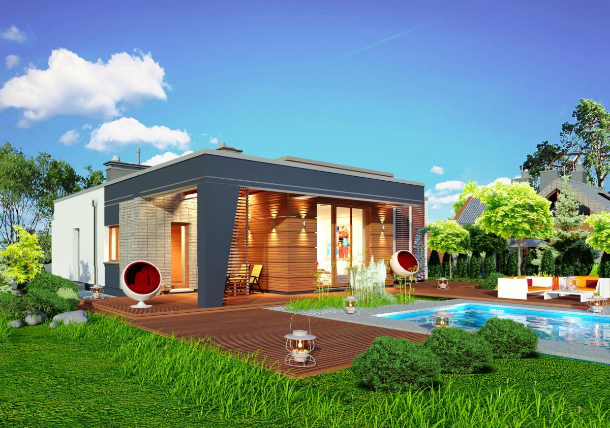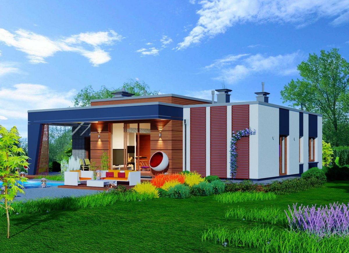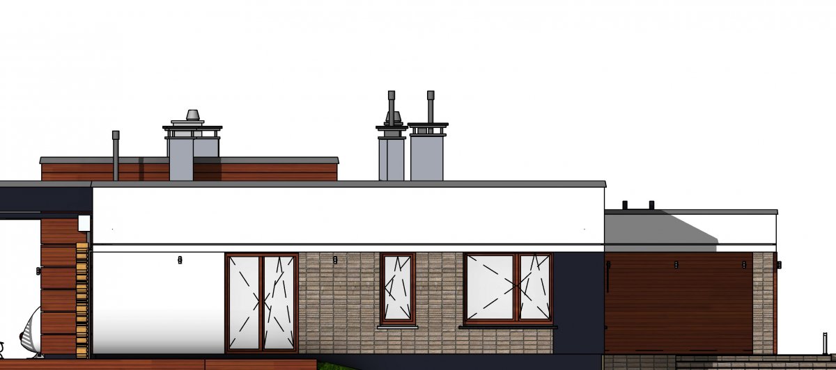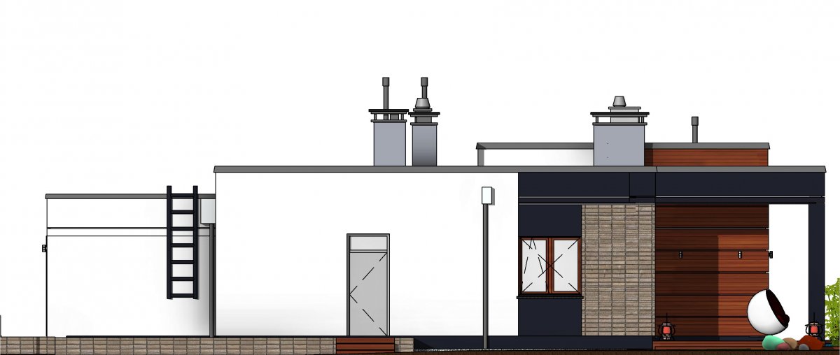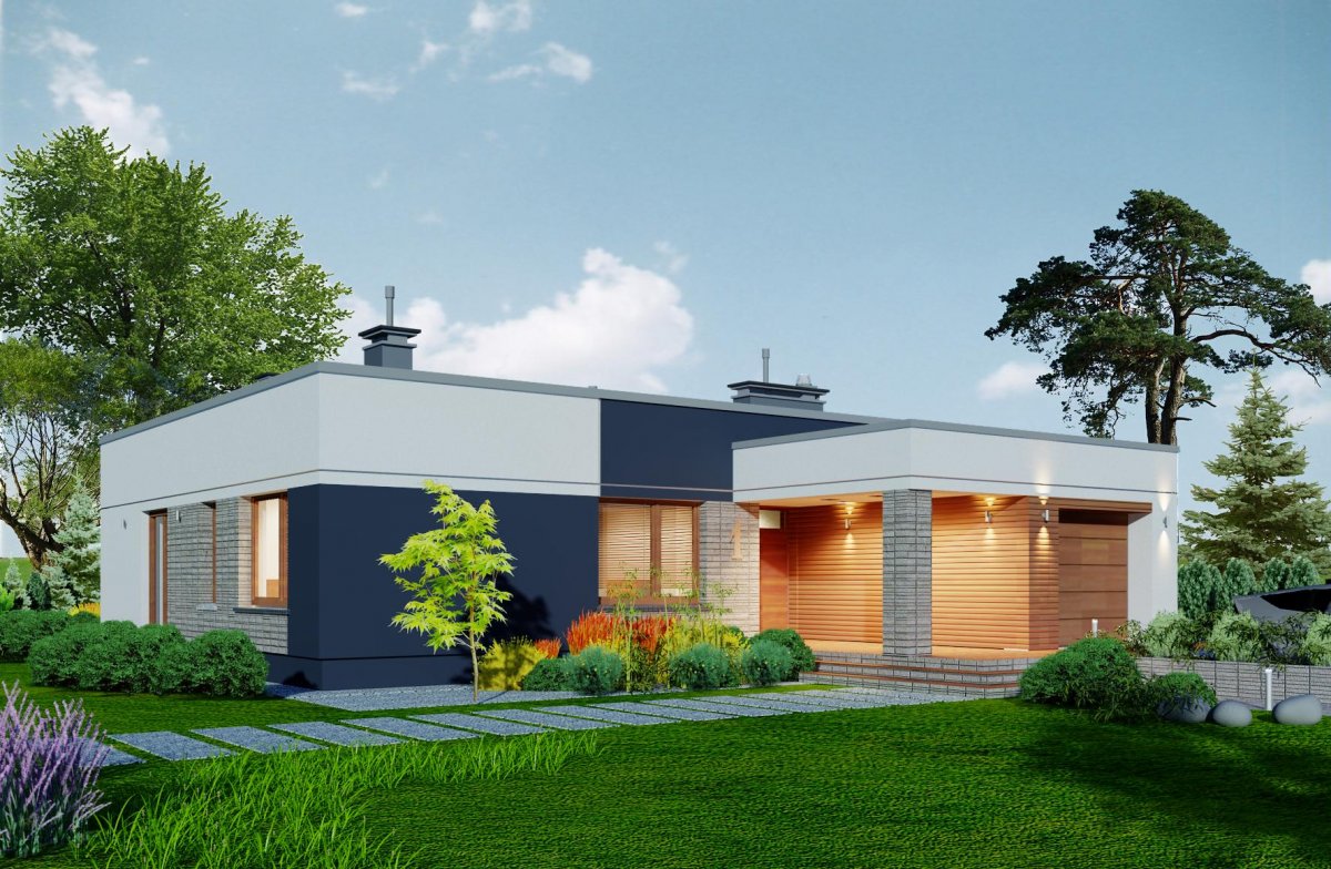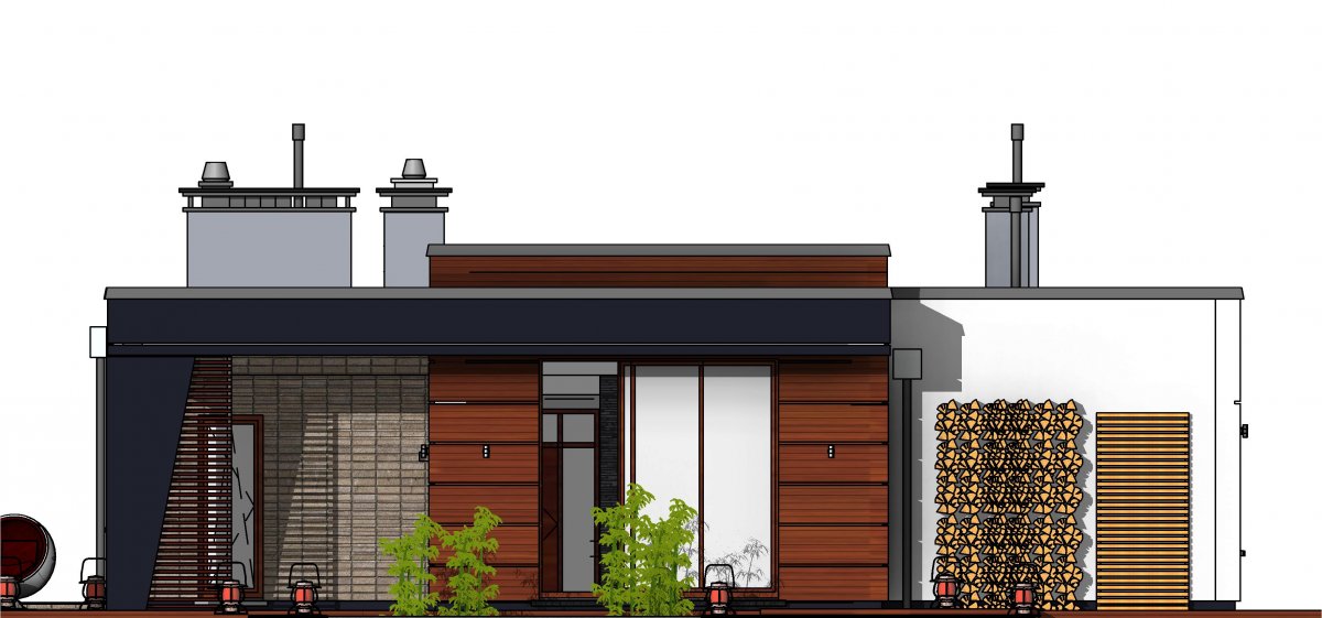 Very thoughtful layout of the rooms provides flexibility in adapting them to your needs. A clear separation of the functional zones of the house allows for comfortable and independent use of them, and also provides the possibility of closing the door of the private part. Also the living room and kitchen can be separated by walls with separate entrances to both rooms.