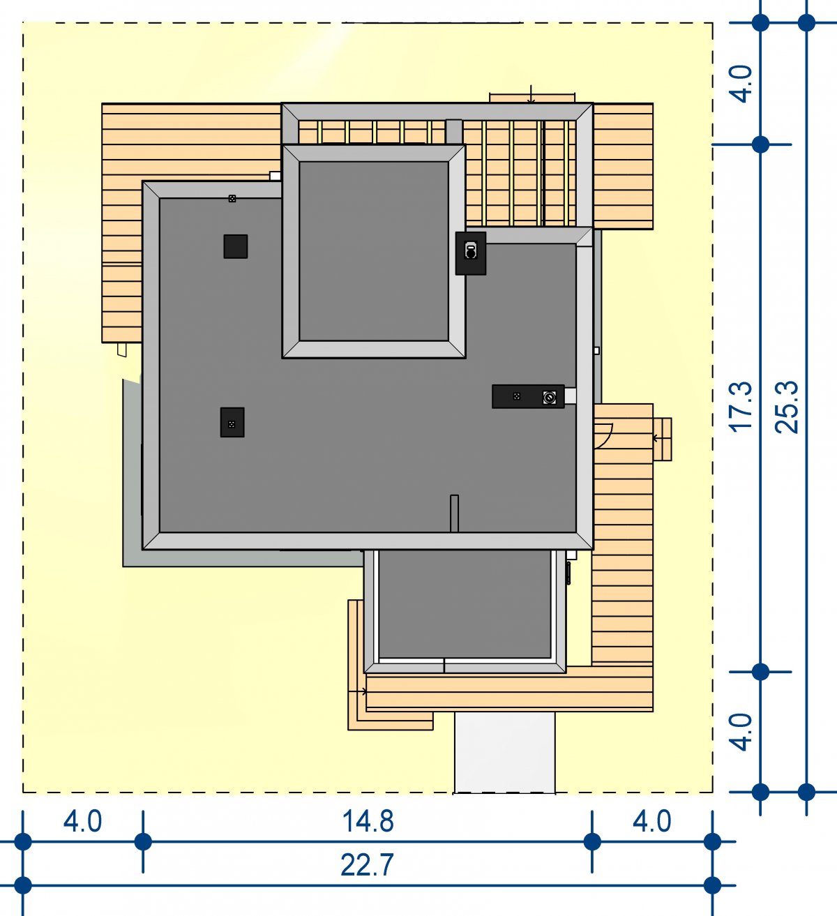 Min. Plot dimensions 22.70×25.30 m