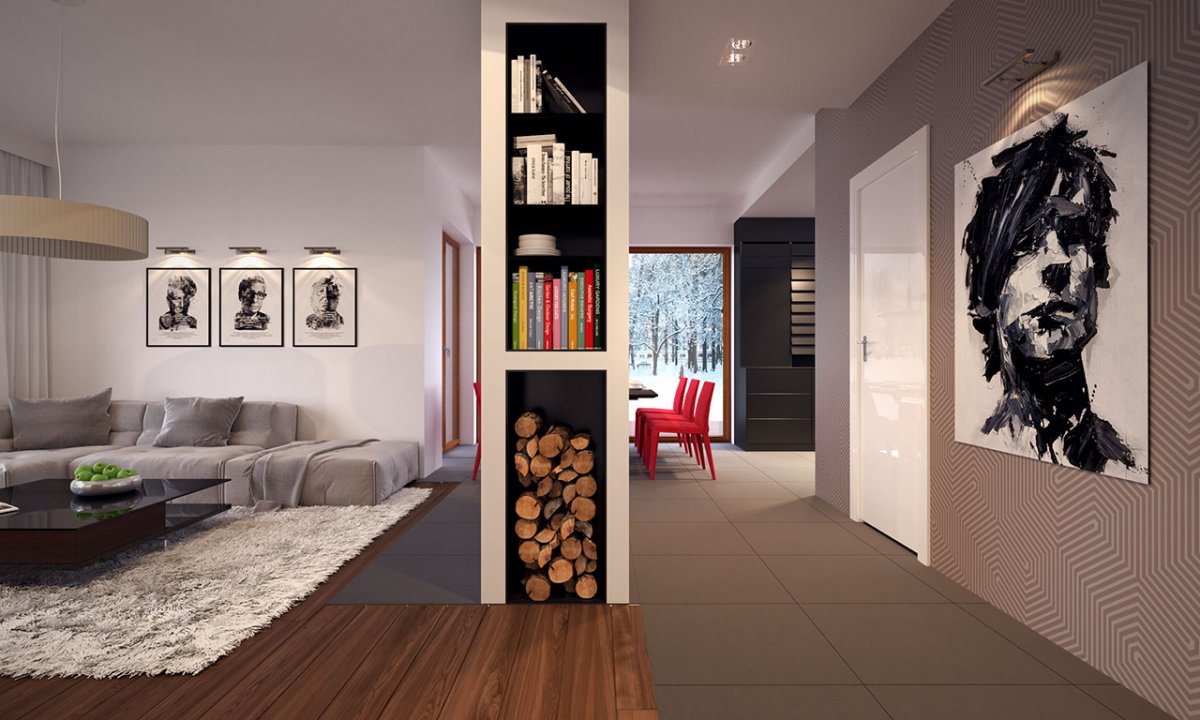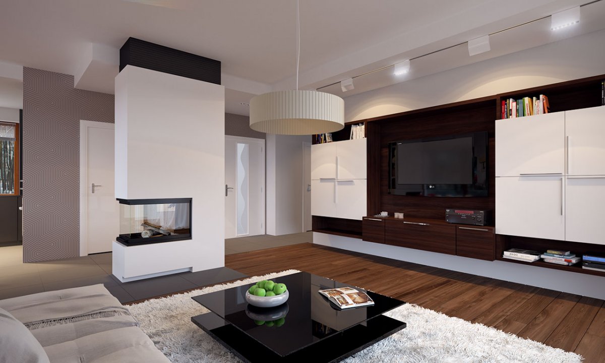 A large boiler room has been designed in the house, accessible from the vestibule, whose parameters allow the boiler to be installed on any type of fuel, including solid fuel and a double garage. The advantage of the design is its simplicity both in the layout of the rooms and in the facade solutions, where simple, classic materials and subtle detail give modern style.