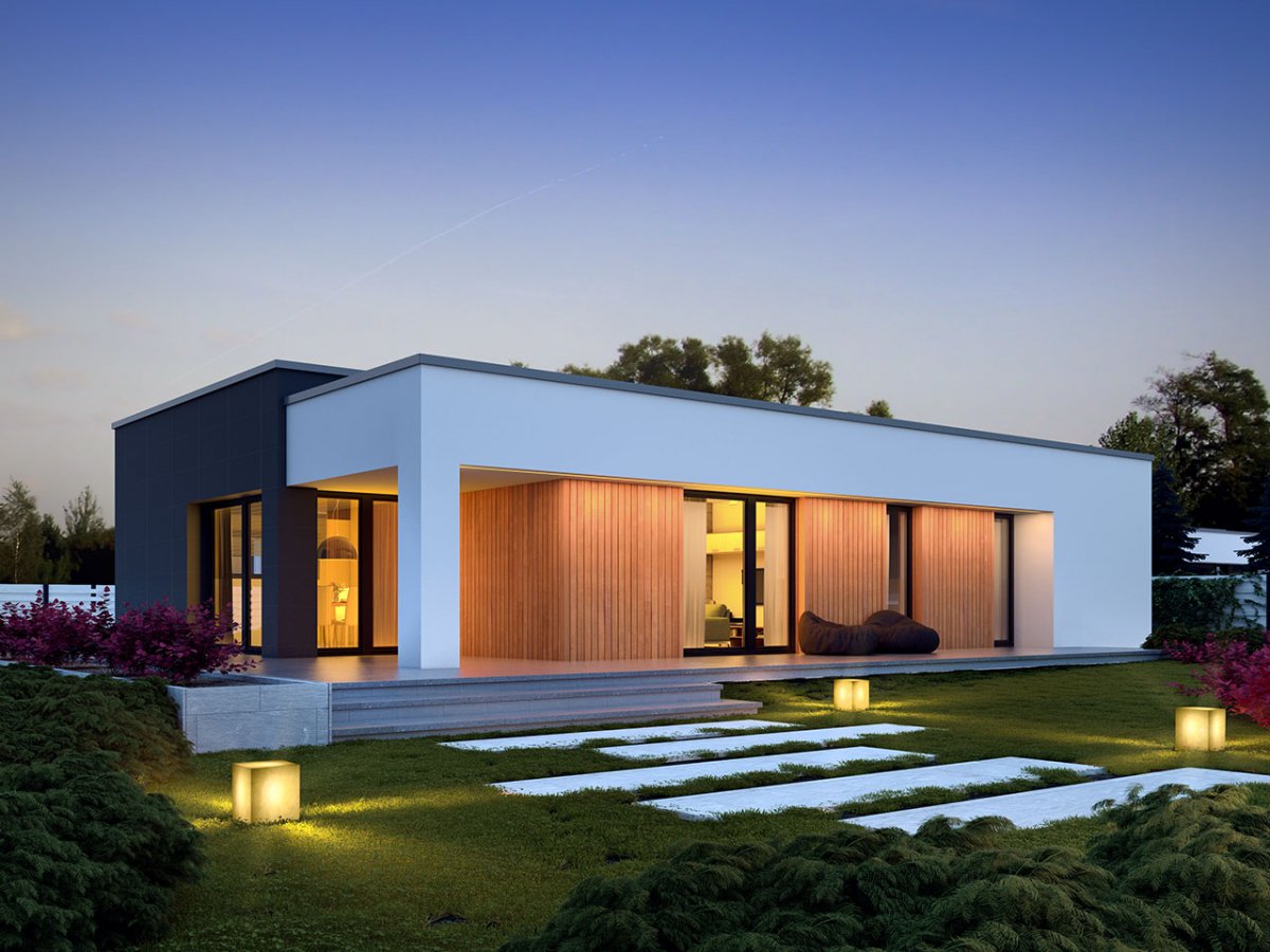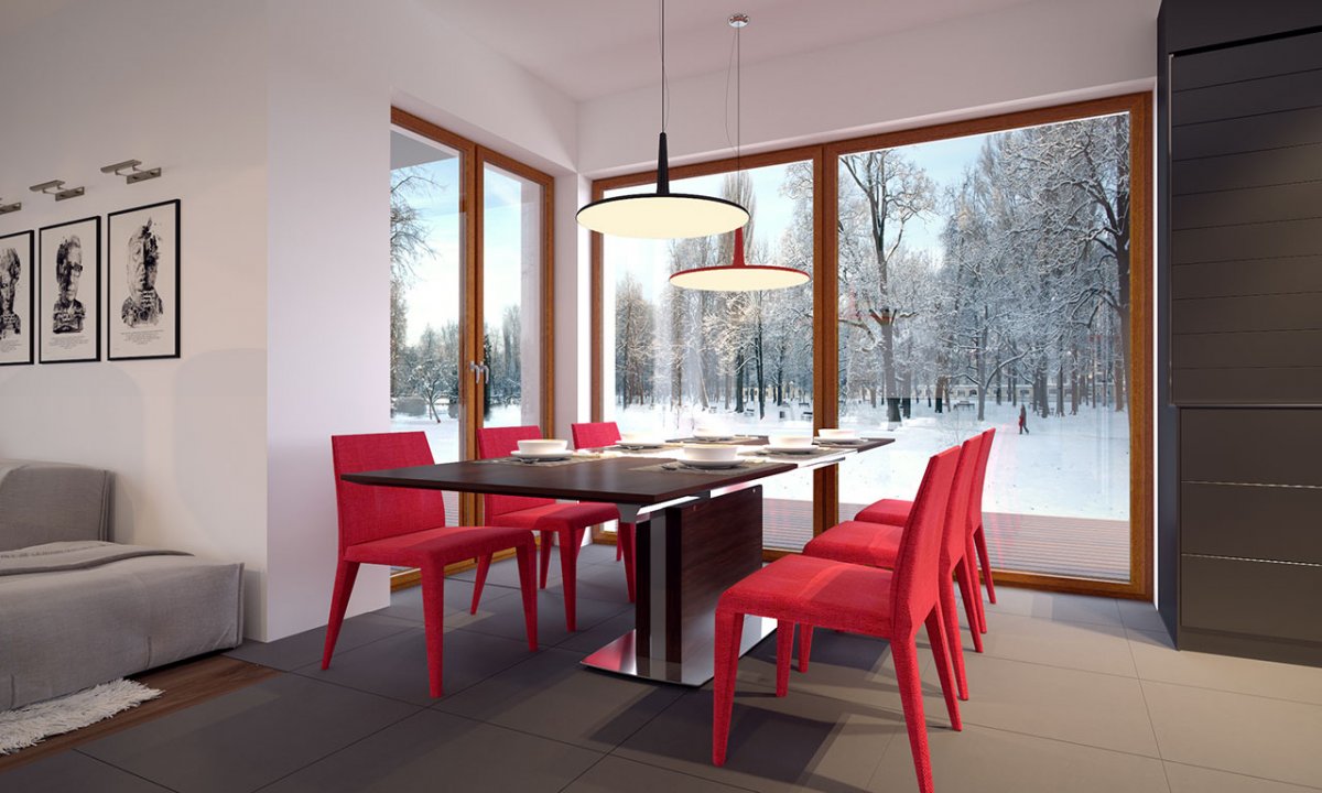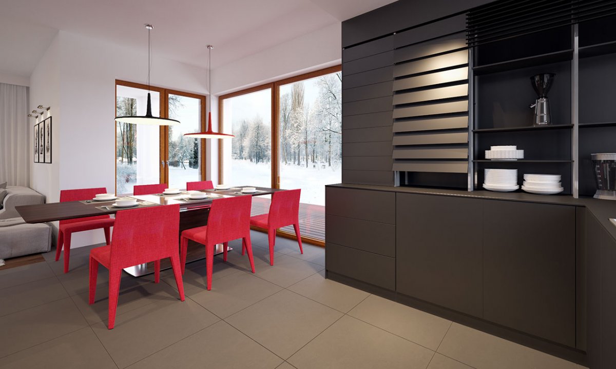 The advantage of the design is a large, partly roofed terrace. The proposed, interesting and spacious arrangement of the rooms enables a number of arrangements. The night part has 3 comfortable bedrooms, two of which have a terrace and a bathroom.