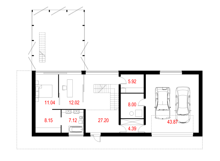 House X_07 is a design of a modern house with a flat roof. Uncompromising and elegant, perfect for people who value original solutions. The advantage of the house is the transfer of almost all functions to the first floor of the building, and the creation of an office part on the ground floor.
