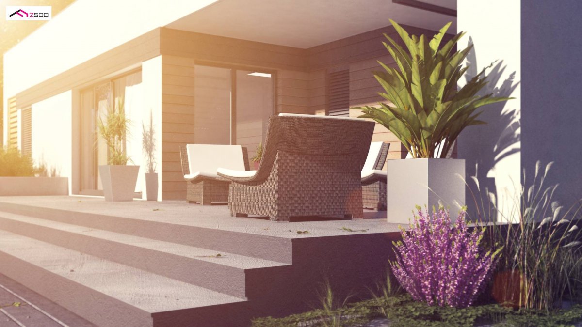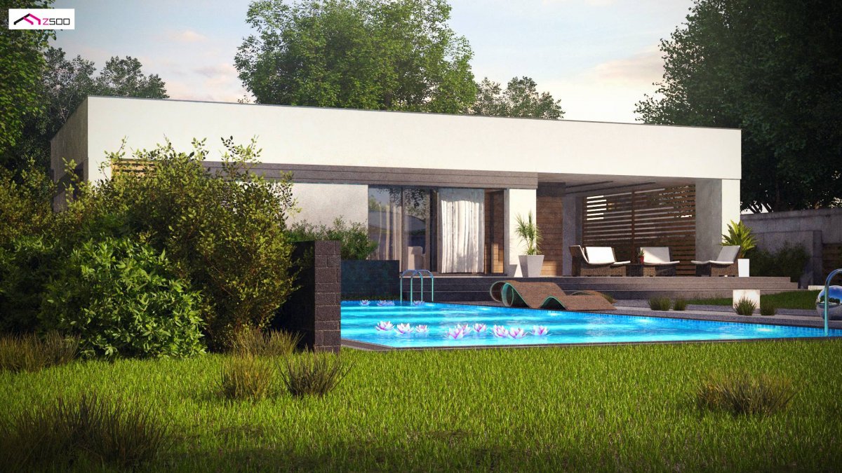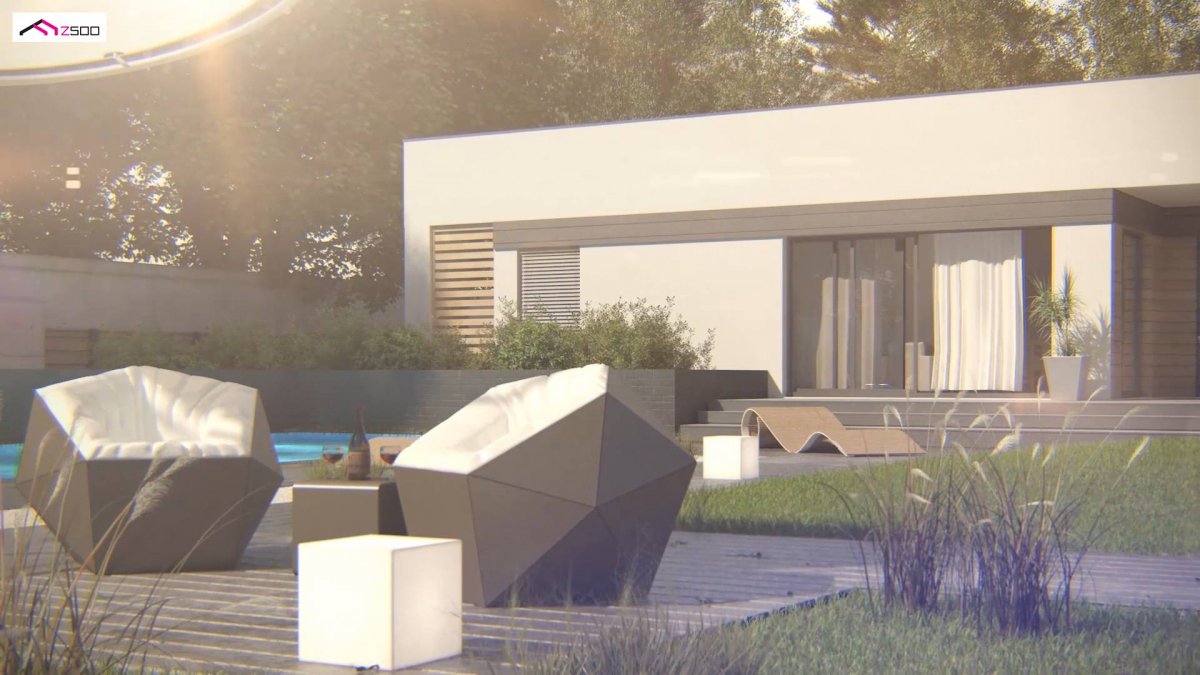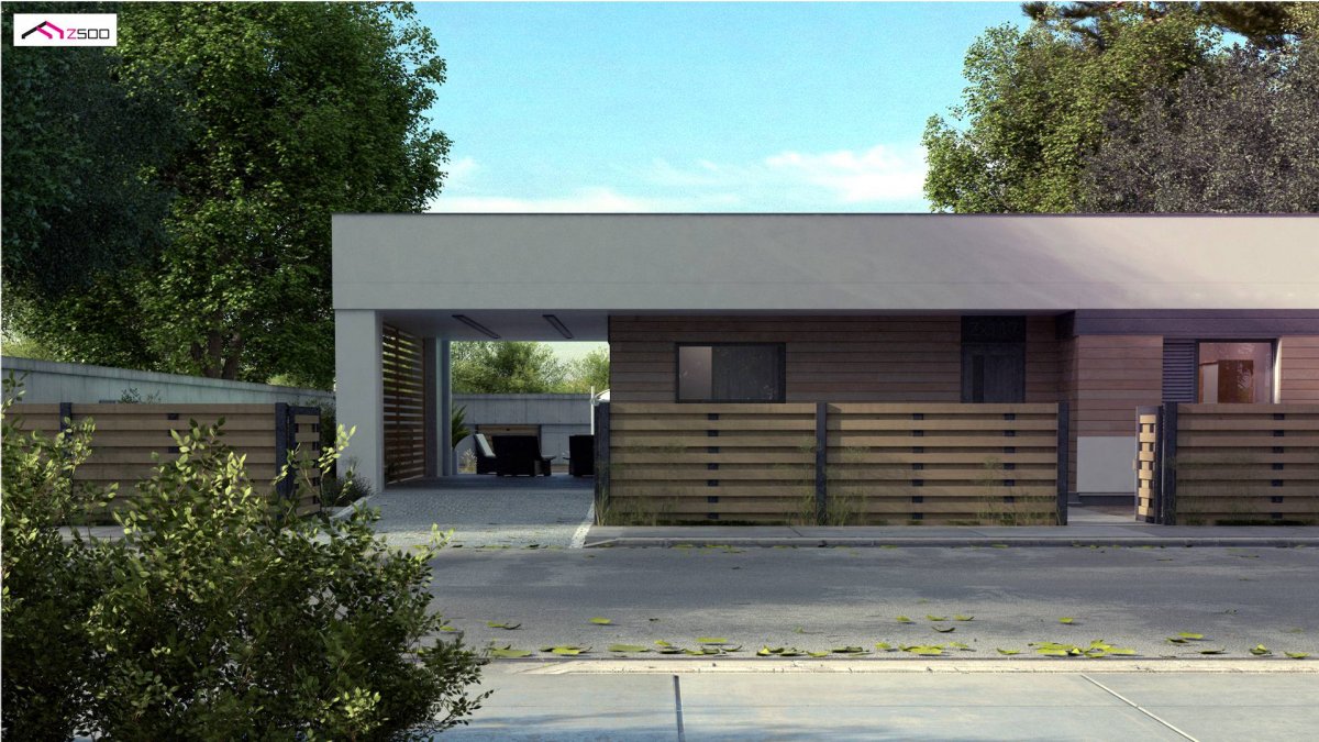 Zx 117 is a modern, one-story house with a flat roof. The facade is covered with wood, kept in the spirit of silence of the heart and closeness to nature, with the simplest possible appearance.