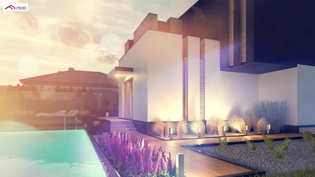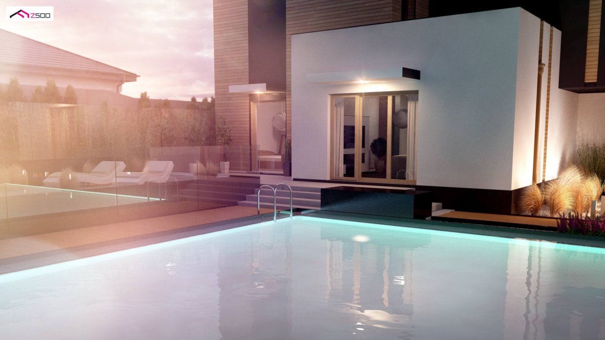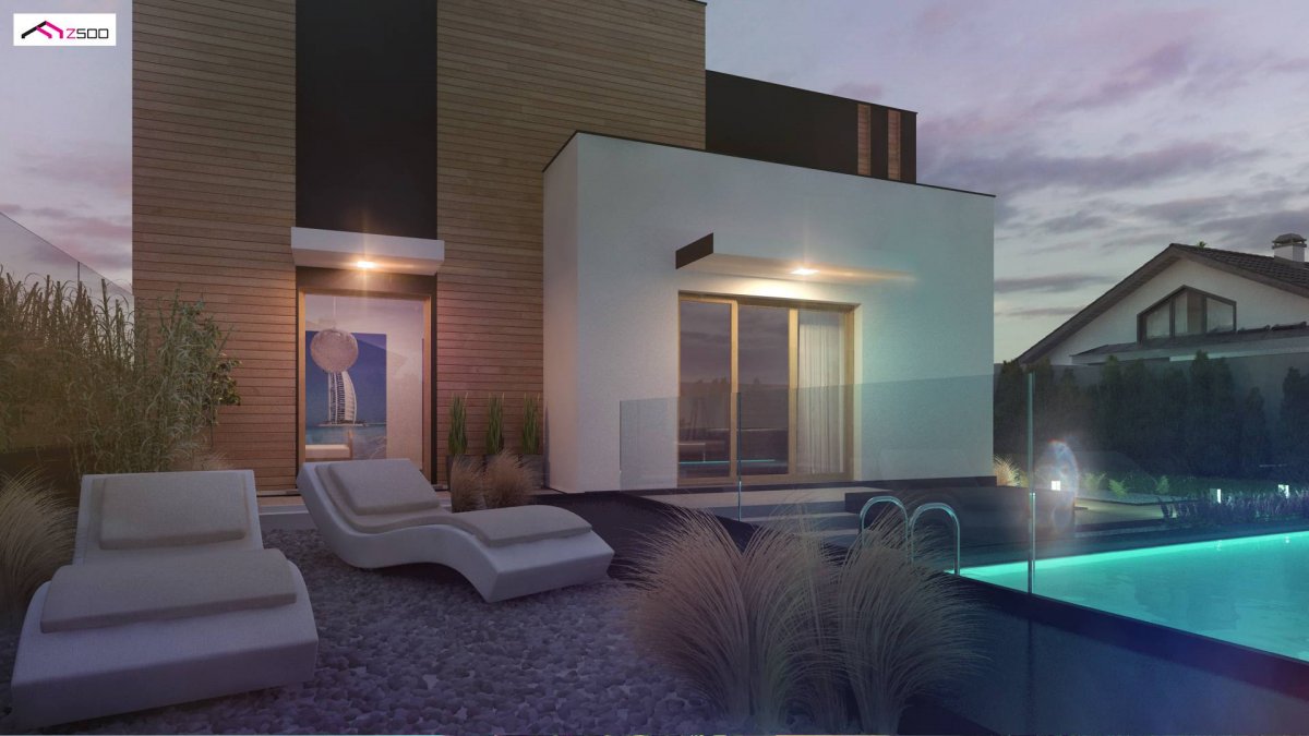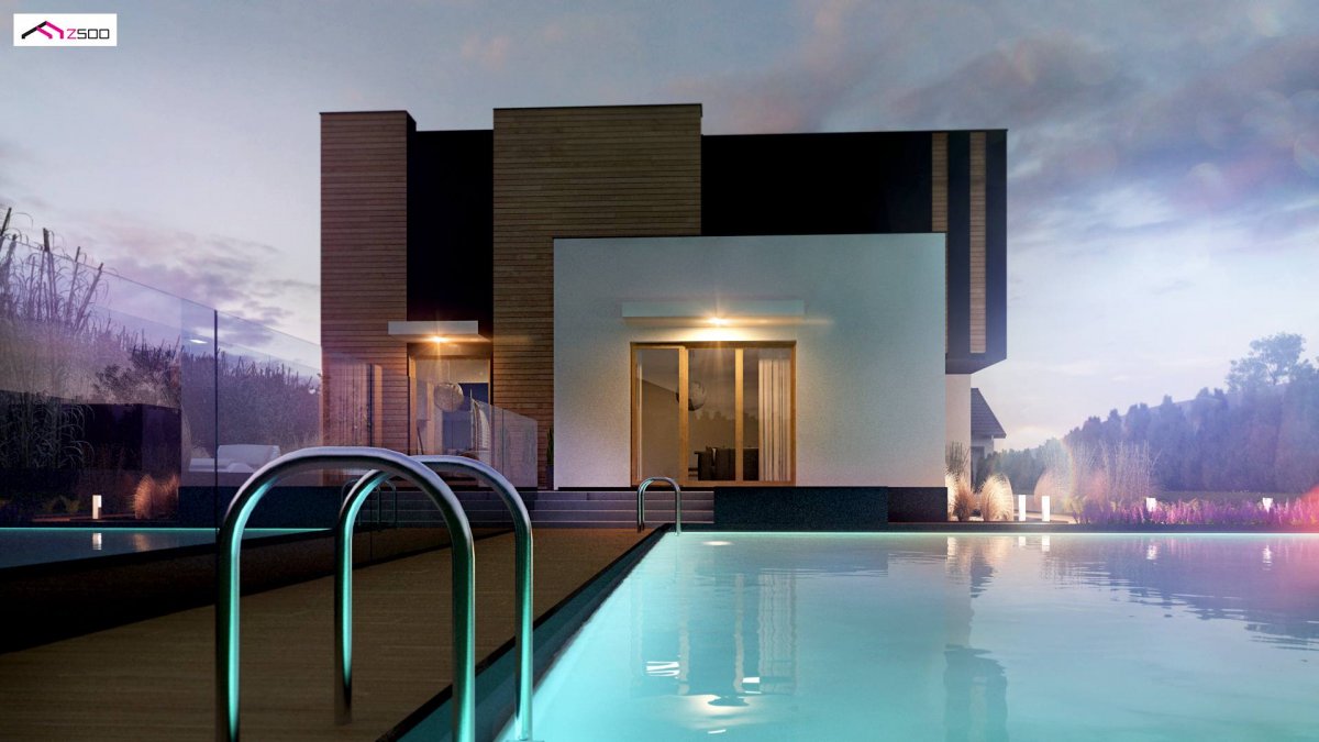 Zx120 is a two-storey, multi-story house with a double garage. It can be a two-family flat. Thanks to the unique ingenuity of the architect, it combines modern minimalism and functionality. The residence is perfectly adapted to the present day. It can become a two-generation home when you don’t want to climb stairs in old age, as well as the home of a young married couple. Separate wardrobes and 2 storage spaces in the garage make the house ideal for rent. The possibility of closing the ground floor and the floor next to the staircase separately is a valuable privacy that both the landlord and tenant will experience. And the loan is paid off by itself …