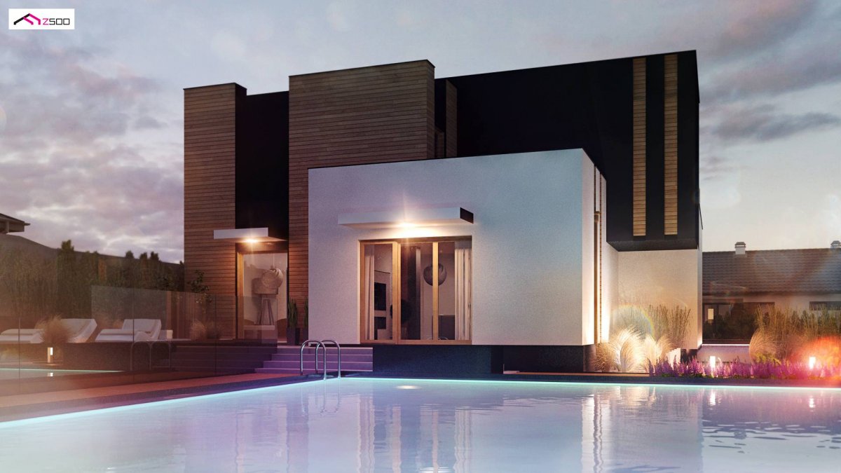 Facade cladding made of natural wood, interesting colors and the use of original window joinery highlight the modern look and unique functionality of the Zx120 house.
