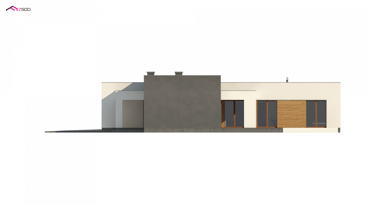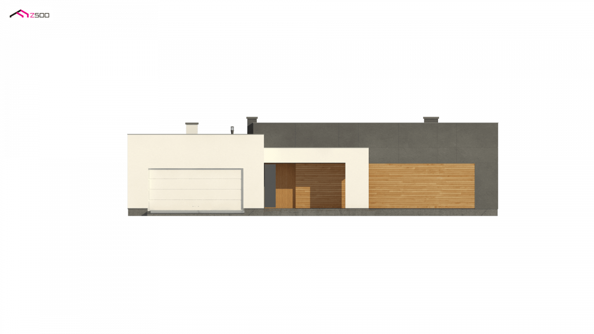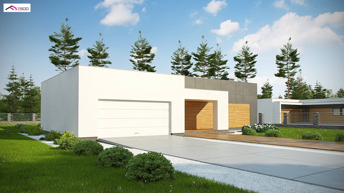 Zx133 is a modern, one-storey detached house with a flat roof and a 2-garage.