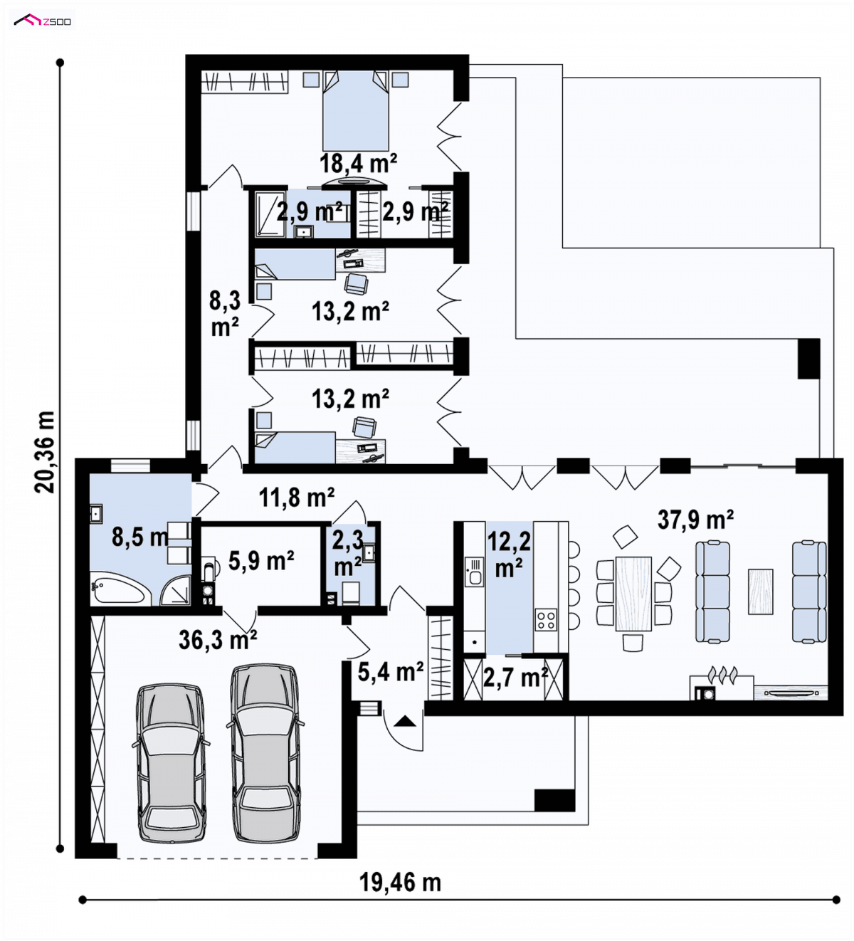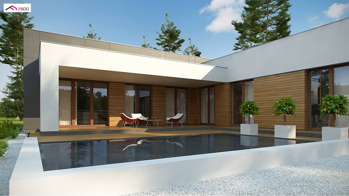 The modern shape with wooden elements, large glazing, swimming pool and the possibility of emphasizing the relaxation area make the Zx133 project dedicated to people who particularly want freedom, relaxation and rest after a hard day’s work.