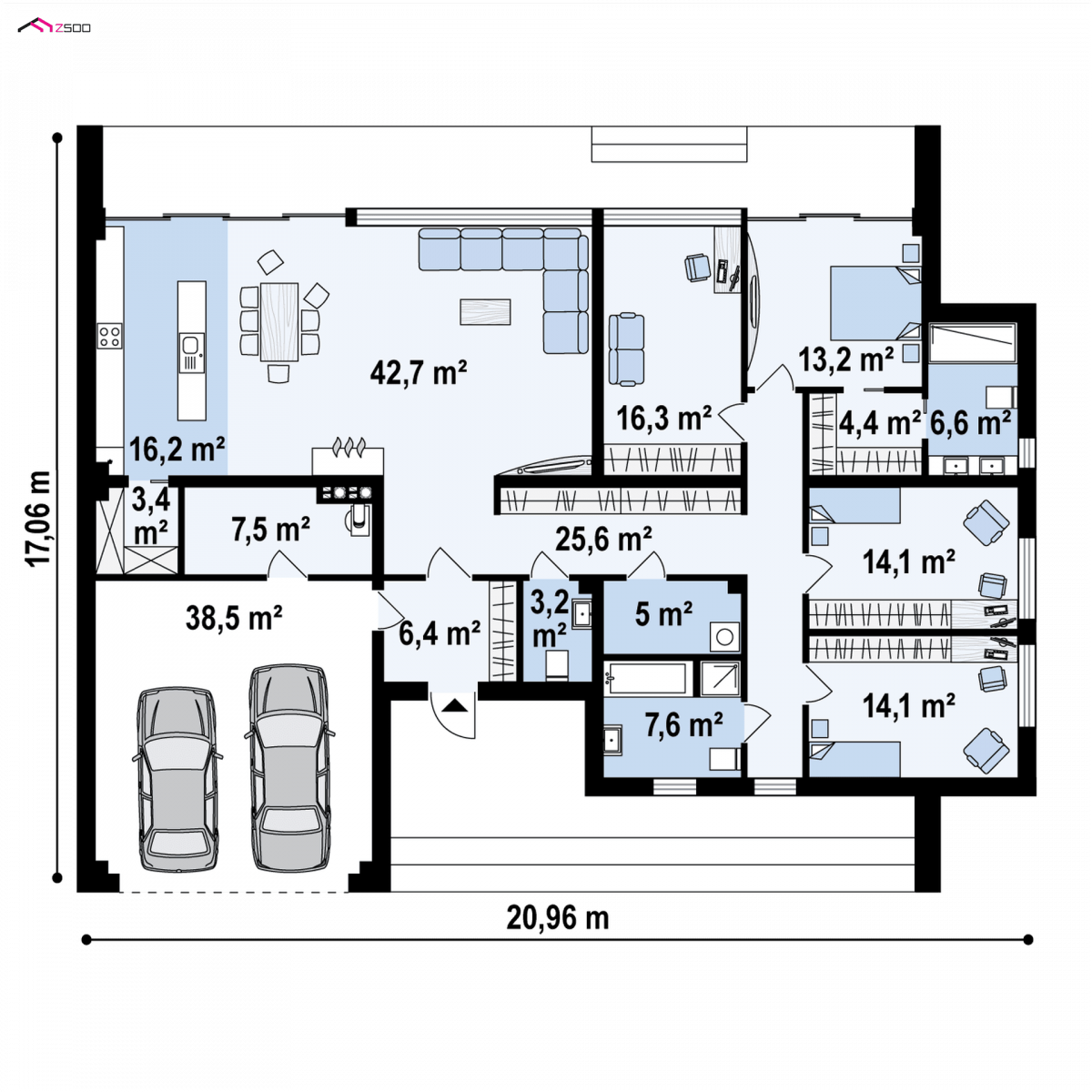The Zx72 house is dedicated to demanding people who want to live in a modern and spacious one-story house with a garden.