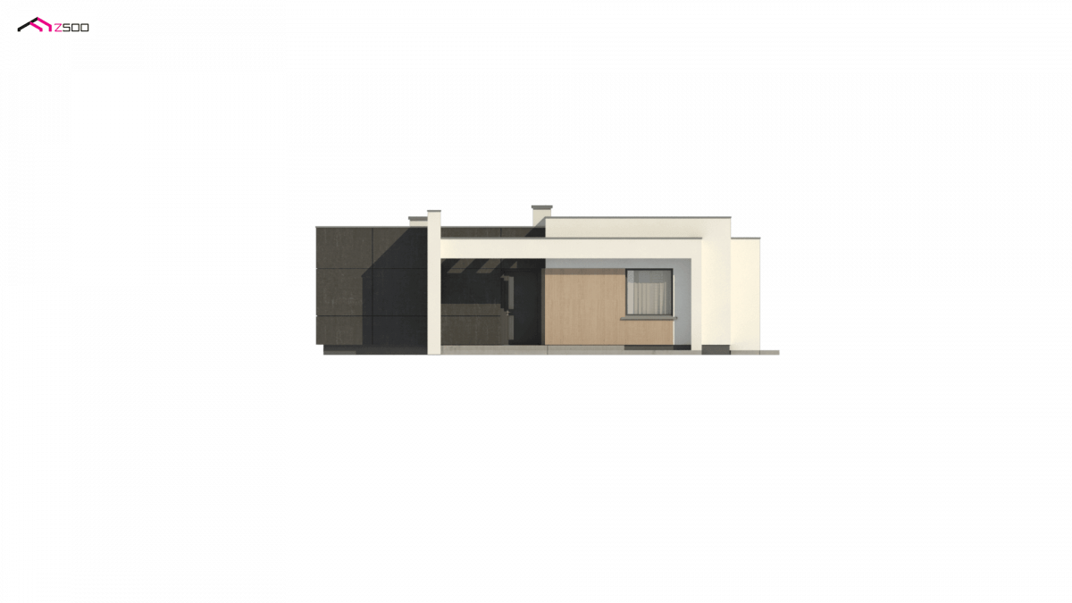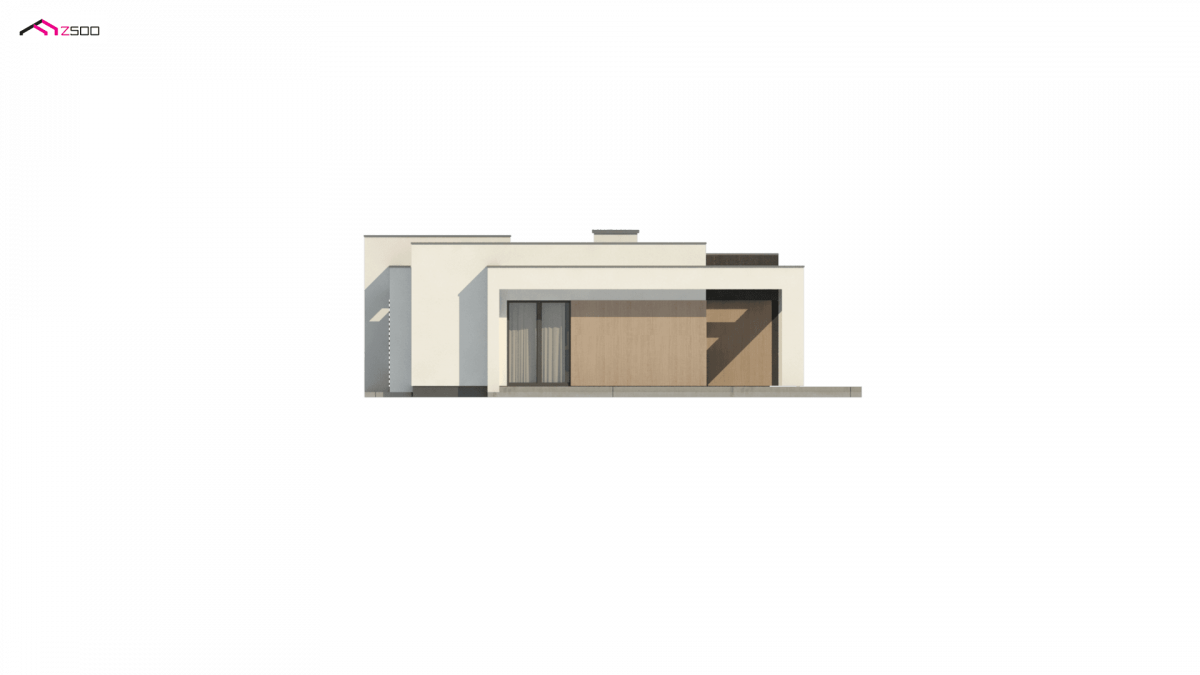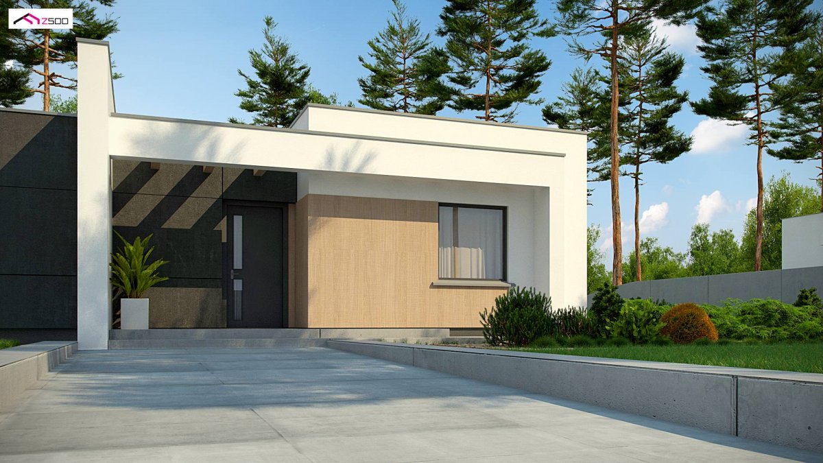 Zx77 D is a small modern MDM house with a flat roof, covered terrace, sliding panels and warm facade colors. Thanks to the small surface, it is perfect for a project for young couples.