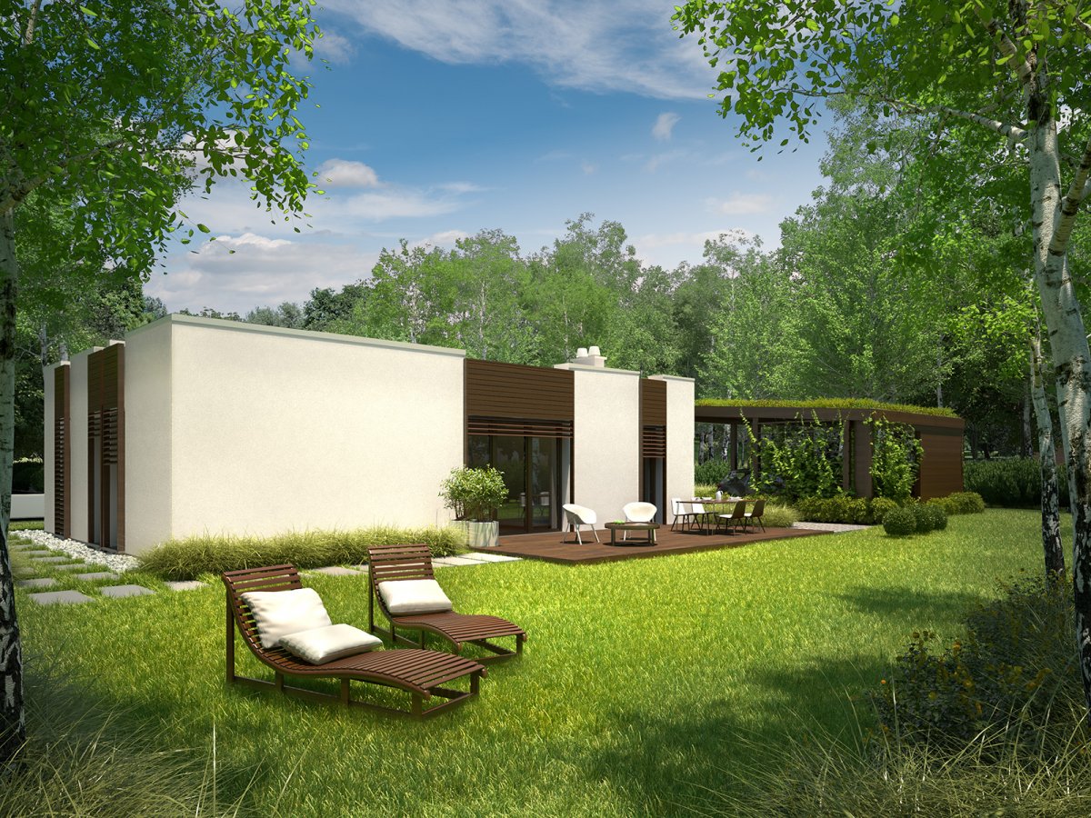 The saving of detail, simple form and clear functional arrangement of the interior make it an excellent proposition for people who value comfort and go with the times. An additional advantage of the house is the possibility of covering all windows with the use of wooden external horizontal blinds fitting elegant stripes on the facade.
