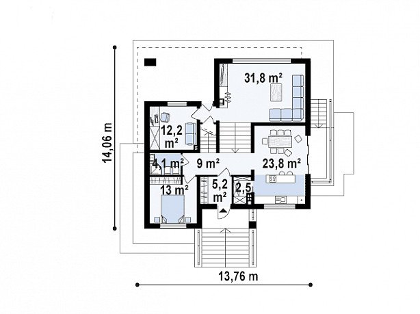 Zx131 as a house with a mezzanine is dedicated to people who want to make the most of all rooms in a relatively small area.